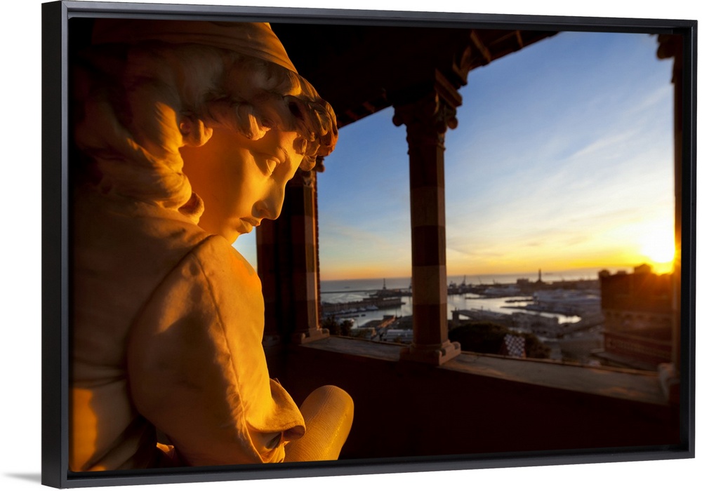 <p>Italy, Liguria, Mediterranean sea, Ligurian sea, Ligurian Riviera, Genova district, Genova, Statue of young Christopher Colombus in one of the terraces of D'Albertis' Castle</p>