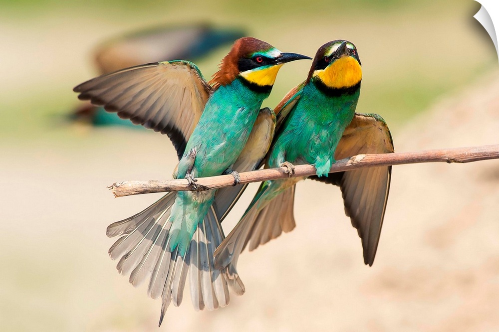 <p>Italy, Lombardy, Mantova district, Canneto sull'oglio, Couple of bee-eaters on a branch laid.</p>