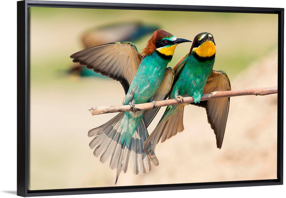 <p>Italy, Lombardy, Mantova district, Canneto sull'oglio, Couple of bee-eaters on a branch laid.</p>