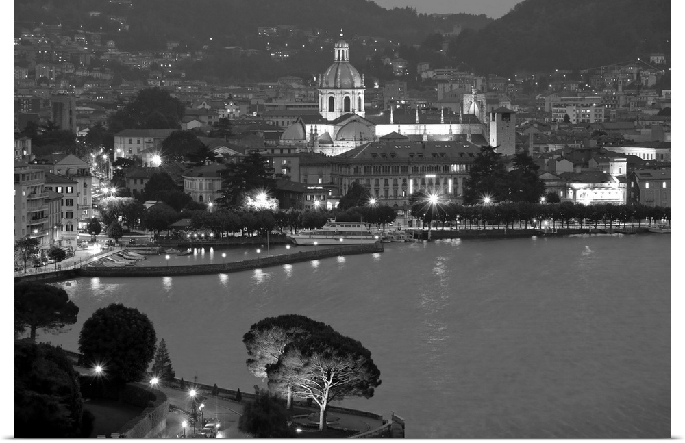 <p>Italy, Lombardy, Lakes Region, Lake Como, Como, city view from Bellagio road, evening</p>