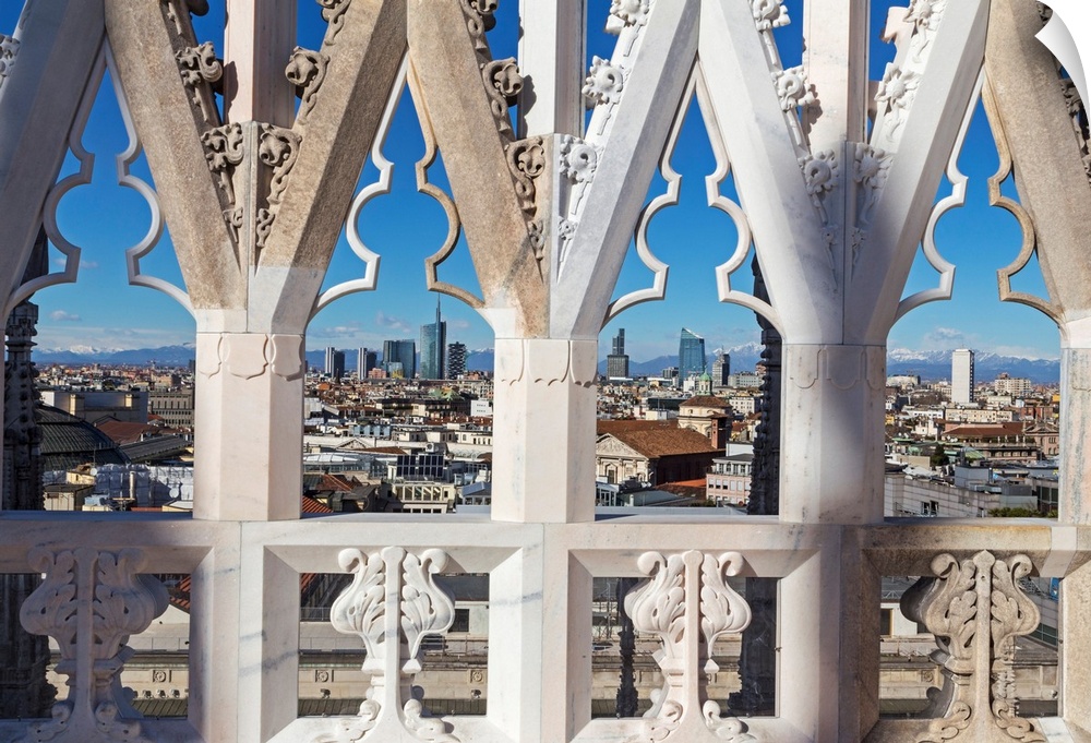 <p>Italy, Lombardy, Milano district, Milan, Piazza Duomo, Milan Cathedral, Milan's new skyline (Porta Nuova district), view from the Duomo.</p>