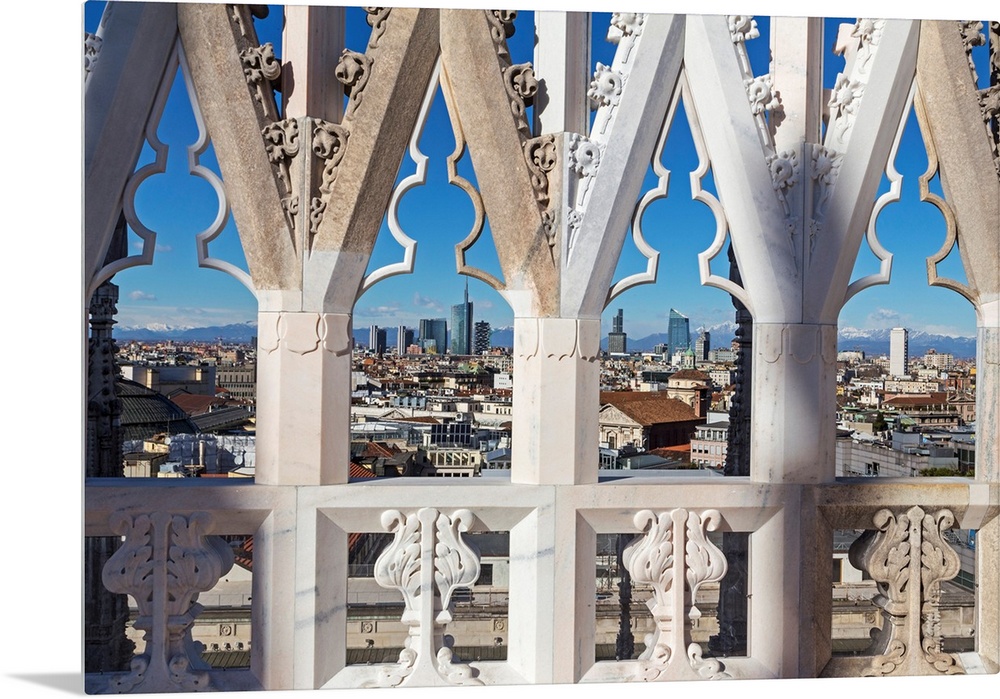 <p>Italy, Lombardy, Milano district, Milan, Piazza Duomo, Milan Cathedral, Milan's new skyline (Porta Nuova district), view from the Duomo.</p>
