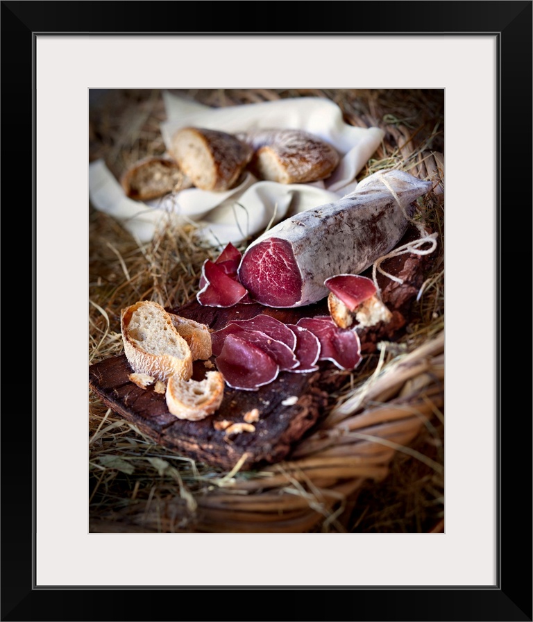 <p>Italy, Lombardy, Sondrio district, Valtellina, Bresaola valtellinese, typical raw sausage.</p>