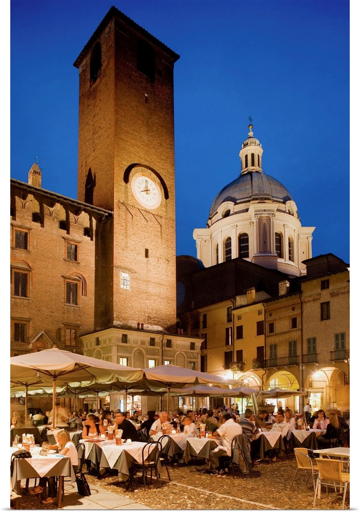 <p>Italy, Italia, Lombardy, Lombardia, Mantua, Mantova, Piazza Broletto, the clock tower of the Palazzo del Podest.. and Sant'Andrea dome</p>