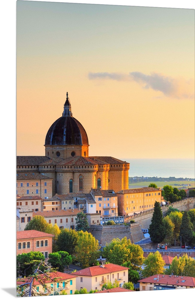 <p>Italy, Marches, Ancona district, Loreto, Loreto Cathedral at sunrise.</p>