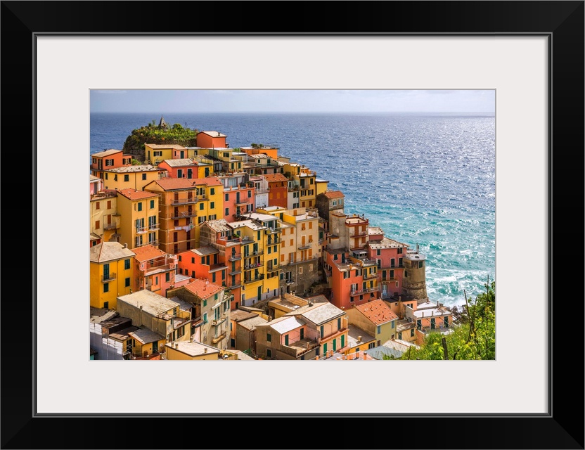 <p>Italy, Manarola. Overview of coastal village and sea. Credit: Jim Nilsen</p>