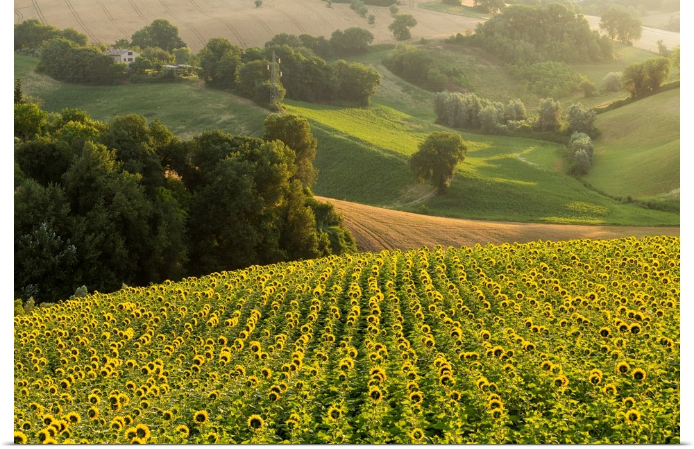 <p>Italy, Marche, Macerata District, Corridonia, Sunflower Field Near Corridonia Village.</p>