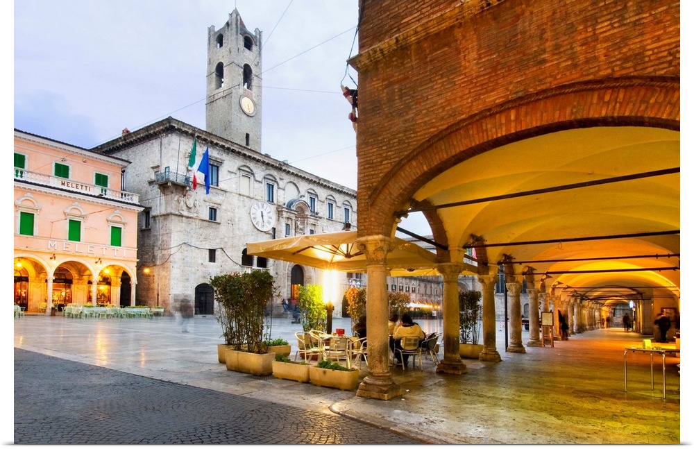 <p>Italy, Marches, Ascoli Piceno, Piazza del Popolo colonnade and Palazzo dei Capitani del Popolo</p>