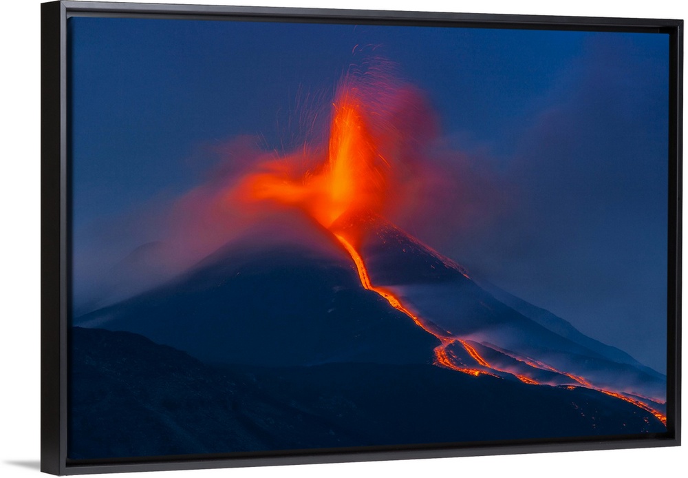 <p>Italy, Sicily, Catania district, Mount Etna, Strombolian eruption, lava flowing from the south-east crater into the Valle del Bove.</p>
