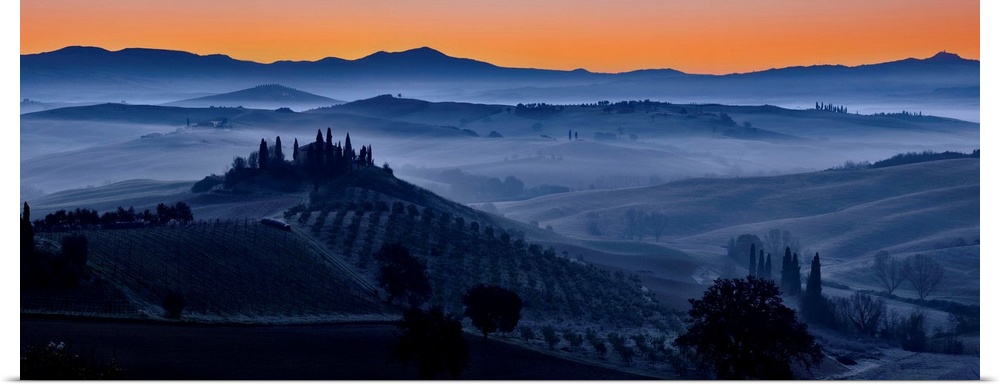 <p>Italy, Tuscany, Siena district, Orcia Valley, Famous Tuscan landscape with Podere Belvedere at sunrise.</p>