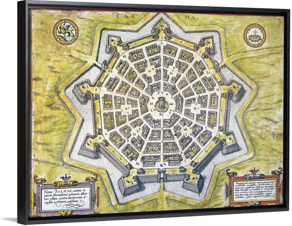 <p>Italy, Palmanova Map, 1598. Engraved Map, 1598, Of the Heavily-Fortified City Of Palmanova, Italy, Built By the Venetians Near the Adriatic To Prevent Turkish Invasions.</p>