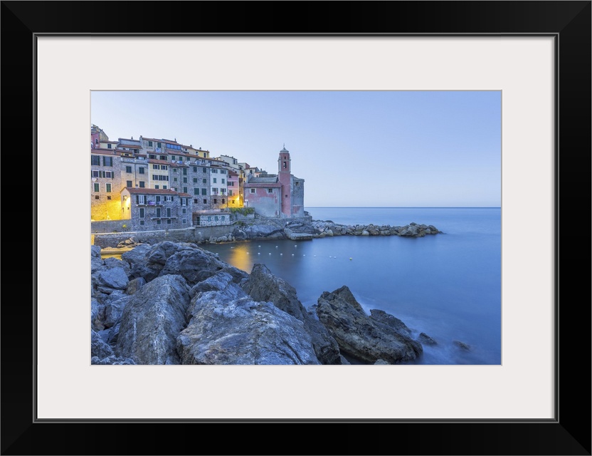 <p>Italy, Liguria, La Spezia district, Parco Nazionale delle Cinque Terre, Golfo dei Poeti, Riviera di Levante, Tellaro, sunrise over Tellaro.</p>