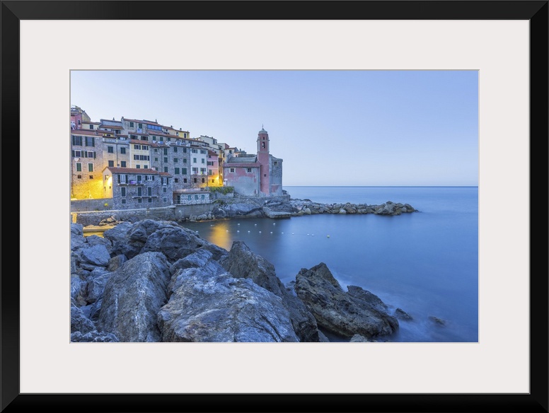 <p>Italy, Liguria, La Spezia district, Parco Nazionale delle Cinque Terre, Golfo dei Poeti, Riviera di Levante, Tellaro, sunrise over Tellaro.</p>