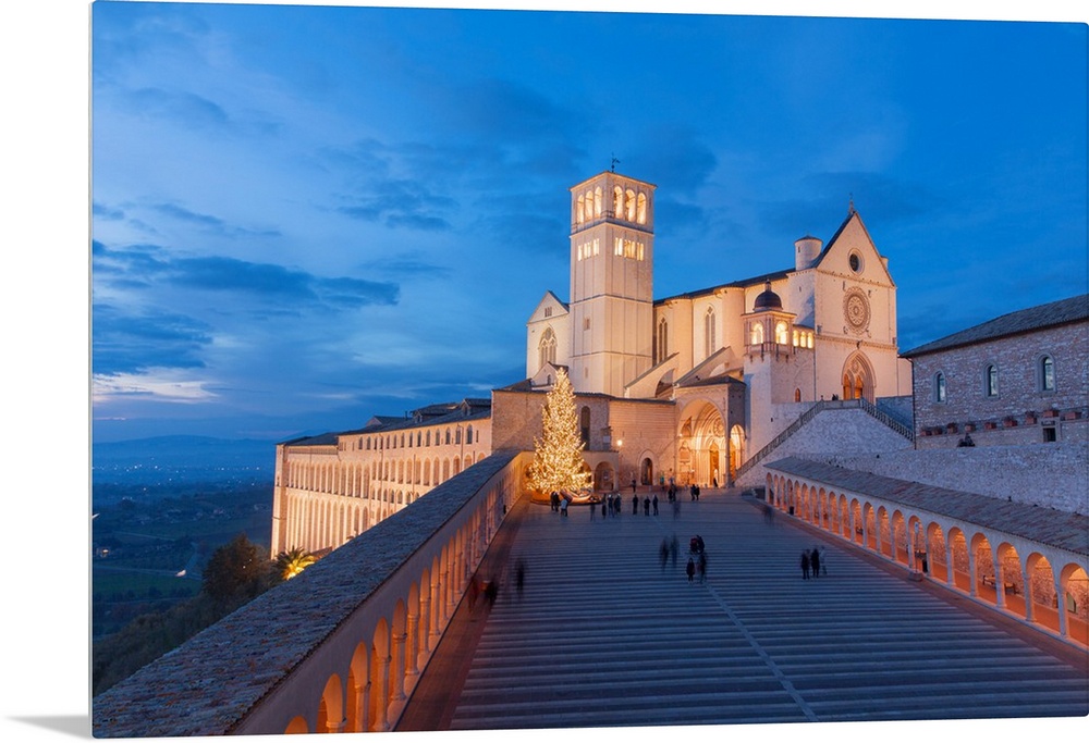 <p>Europe,Italy,Perugia distict,Assisi. The Basilica of St. Francis at dusk.</p>
