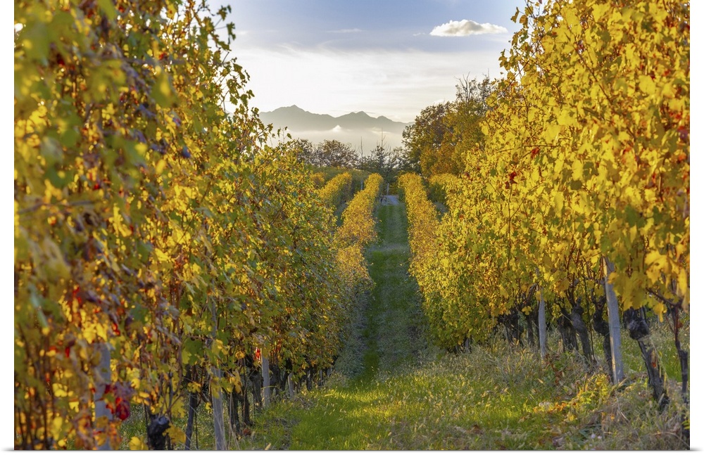 <p>Italy, Piedmont, Vercelli district, Alps, Alto Piemonte, Gattinara, Nebbiolo vineyards on the hills of Gattinara.</p>
