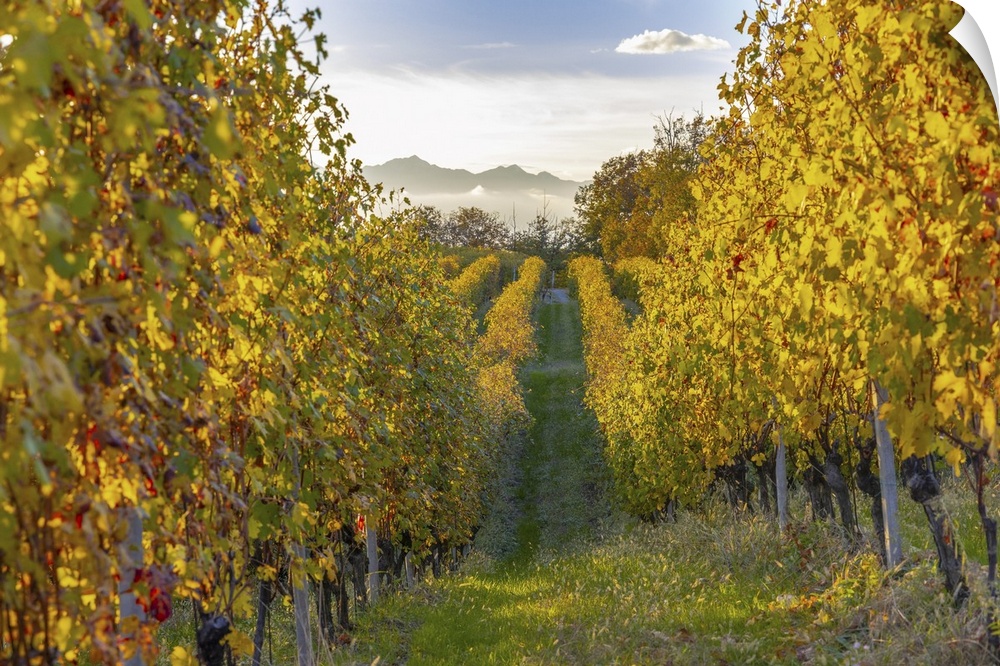 <p>Italy, Piedmont, Vercelli district, Alps, Alto Piemonte, Gattinara, Nebbiolo vineyards on the hills of Gattinara.</p>