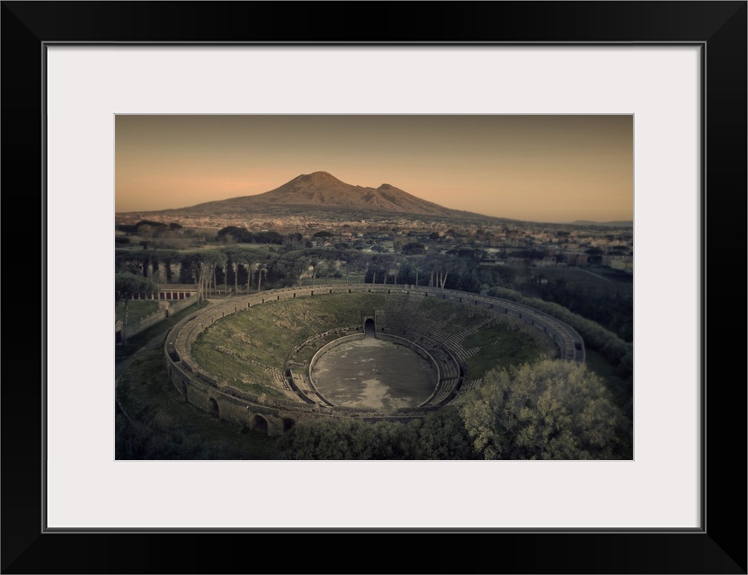 <p>Italy, Campania, Napoli district, Pompeii, Vesuvio vulcan and the Amphitheater of Pompeii archeological site</p>