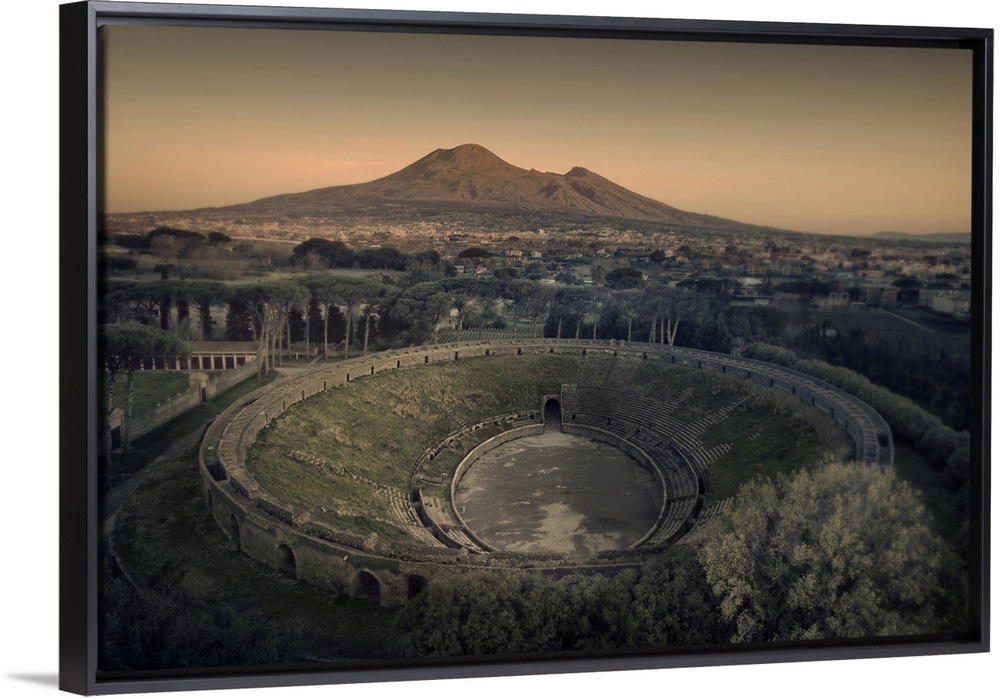 <p>Italy, Campania, Napoli district, Pompeii, Vesuvio vulcan and the Amphitheater of Pompeii archeological site</p>