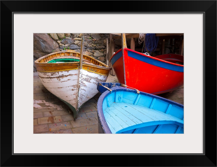 <p>Italy, Riomaggiore. Colorful fishing boats. Credit: Jim Nilsen</p>