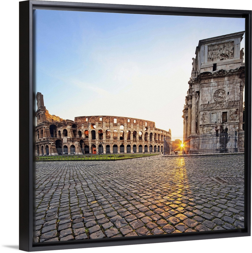 <p>Italy, Latium, Mediterranean area, Rome, Roman Forum, Colosseum, Colosseum and Arch of Constantinum at dawn</p>