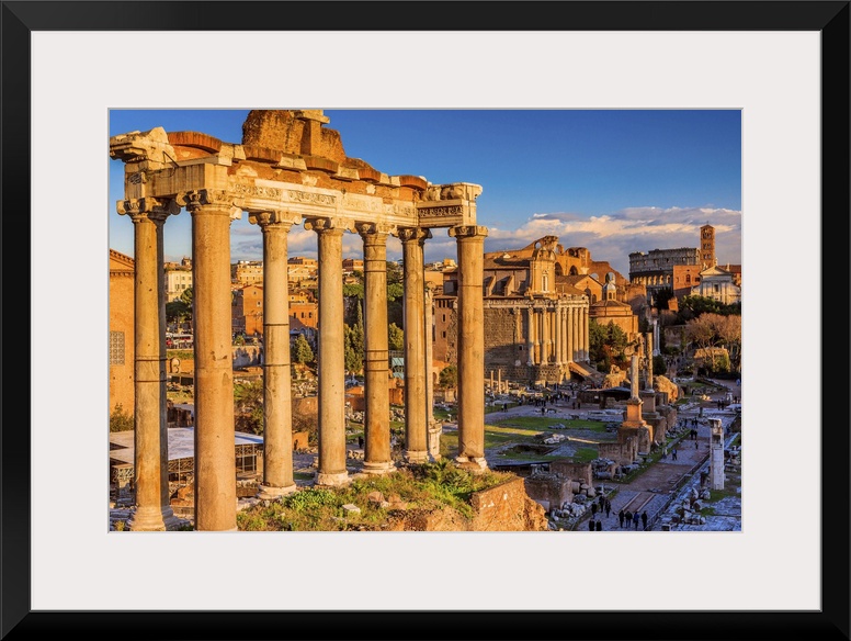 <p>Italy, Latium, Roma district, Rome, Roman Forum, Foro Romano Temple of Saturn, Coliseum in the background.</p>