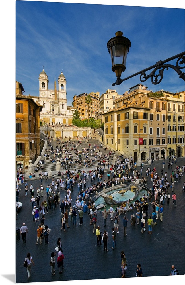 <p>Italy, Latium, Rome, Spanish Steps, Trinit.. dei Monti, Mediterranean area, Roma district, Travel Destination, People in front of the Barchetta fountain</p>
