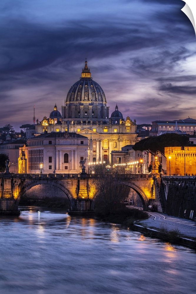 <p>Italy, Rome, St Peter's Basilica, Tiber, Basilica and Ponte Sant'Angelo on the Tiber river.</p>