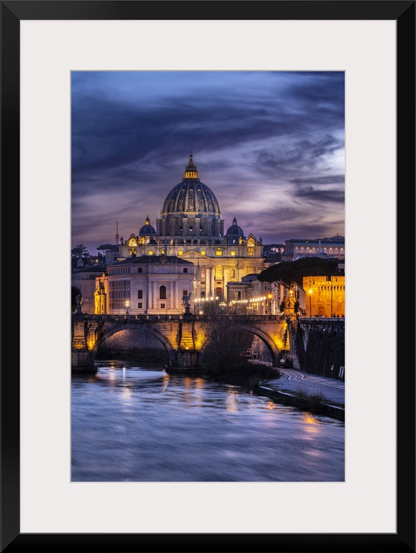 <p>Italy, Rome, St Peter's Basilica, Tiber, Basilica and Ponte Sant'Angelo on the Tiber river.</p>