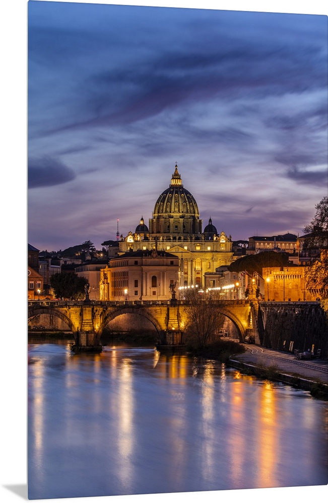 <p>Italy, Rome, St Peter's Basilica, Tiber, Basilica and Ponte Sant'Angelo on the Tiber river.</p>
