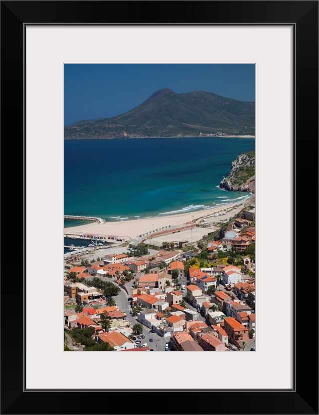 <p>Italy, Sardinia, Southwest Sardinia, Buggerru, overview of mining town established in 1860</p>