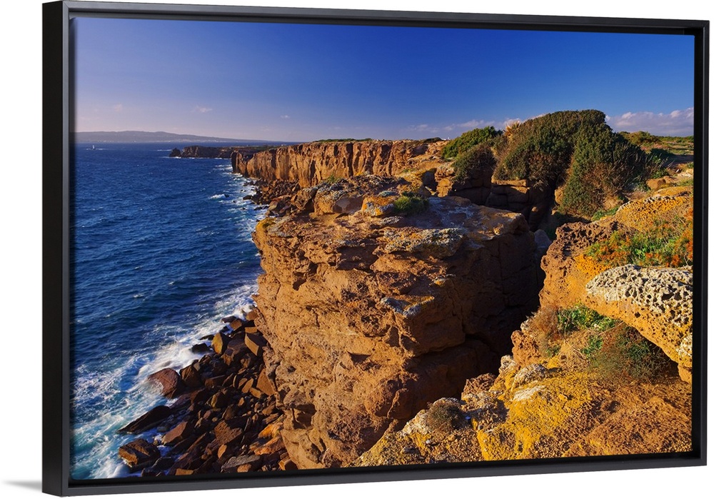 <p>Le scogliere di Trachite rossa a picco sul mare, caratteristiche delle Isole di S. Antioco e S. Pietro, nei pressi di P. Caragoli, sulla costa ovest di S.Antioco.</p>