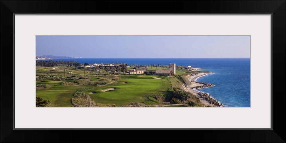 <p>Italy, Sicily, Mediterranean sea, Agrigento district, Sciacca, Hotel, golf course and Verdura Tower of the Verdura Golf and Spa Resort.</p>