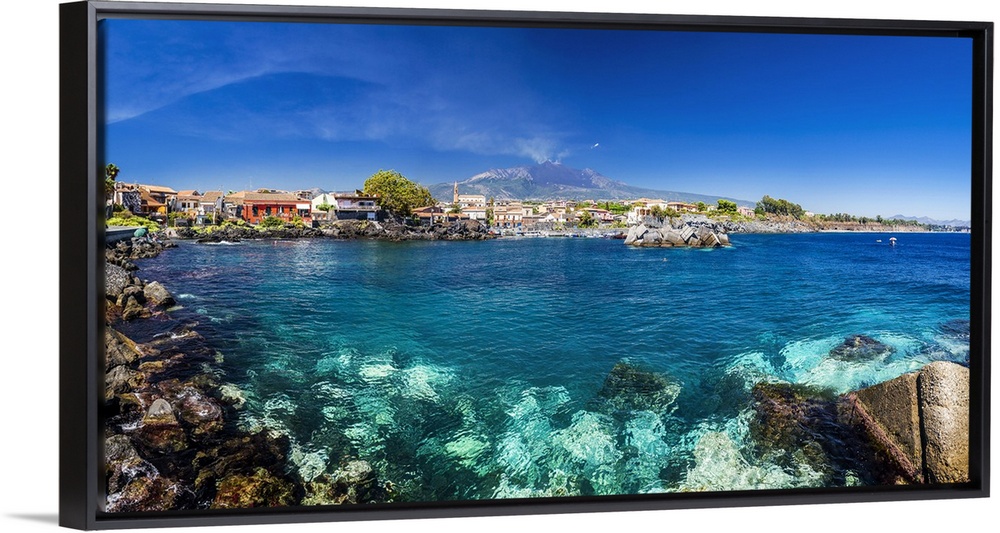 <p>Italy, Sicily, Mediterranean sea, Catania district, Acireale, Pozzillo harbor, Mount Etna in the background.</p>