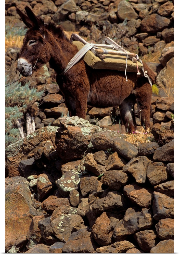 <p>Italy, Italia, Sicily, Sicilia, Aeolian islands, Eolie, Lipari islands, Isola Alicudi, donkey near Alicudi village</p>