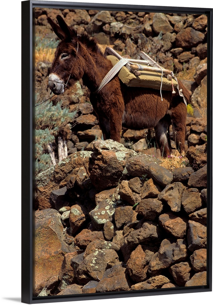 <p>Italy, Italia, Sicily, Sicilia, Aeolian islands, Eolie, Lipari islands, Isola Alicudi, donkey near Alicudi village</p>