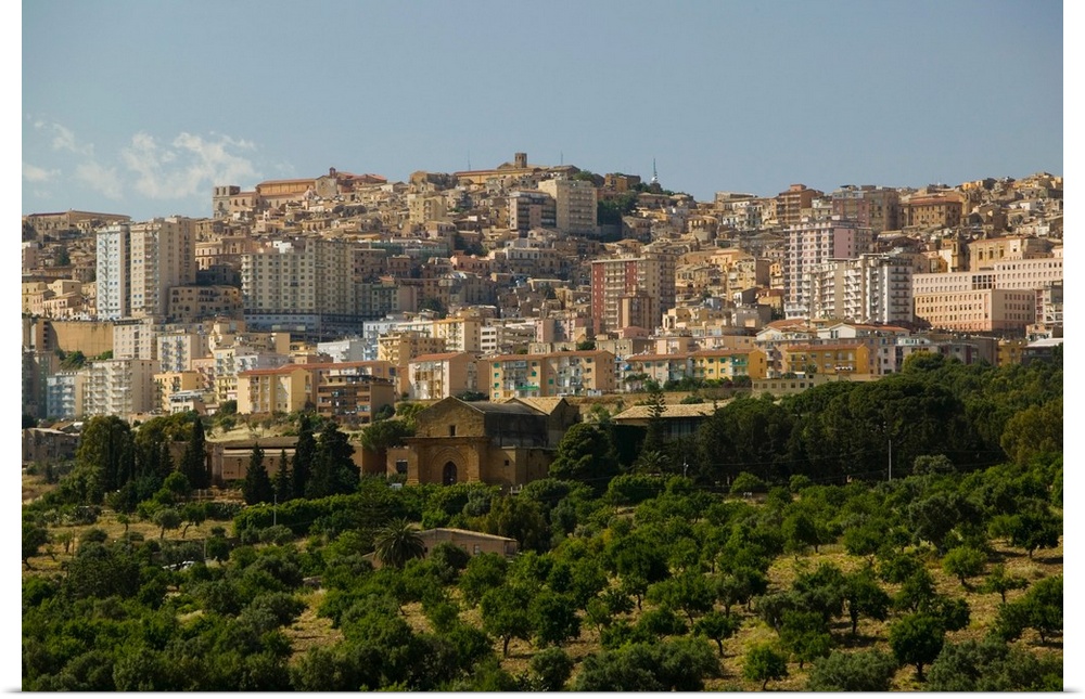 <p>Italy, Sicily, Agrigento, La Valle dei Templi, Valley of the Temples, View of Modern AGRIGENTO</p>