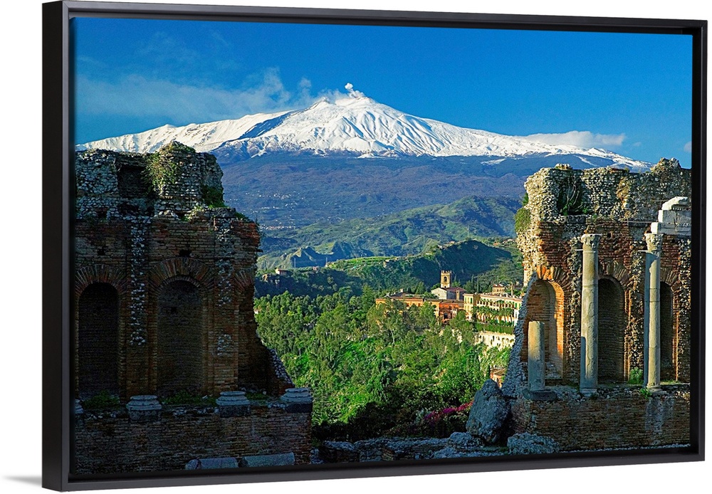 <p>Italy, Sicily, Ionian Coast, Taormina, Greek theatre and Mount Etna in background</p>