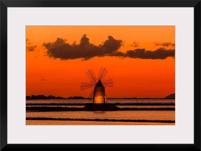 <p>Italy, Sicily, Trapani district, Marsala, Isole dello Stagnone, Windmills in the salt pans of the Stagnone di Marsala.</p>