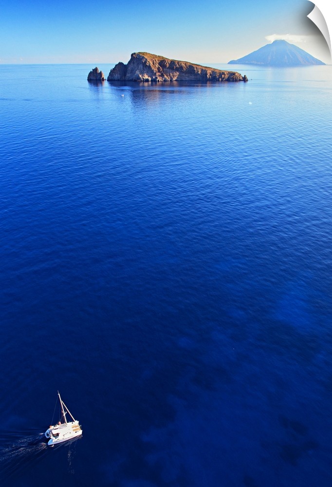 <p>Italy, Sicily, Messina district, Mediterranean sea, Aeolian islands, Lipari islands, Stromboli, Basiluzzo islet and Stromboli island in background</p>