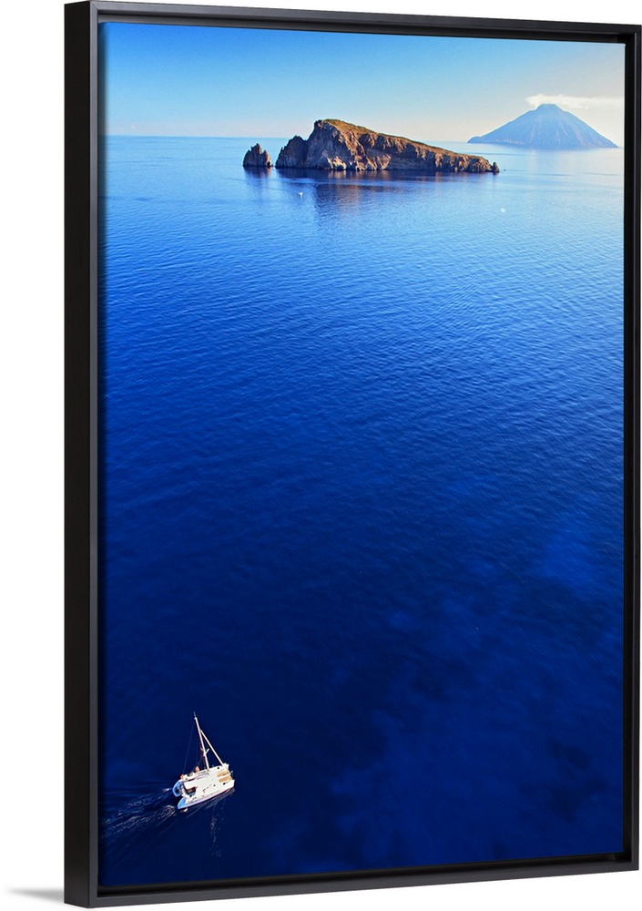 <p>Italy, Sicily, Messina district, Mediterranean sea, Aeolian islands, Lipari islands, Stromboli, Basiluzzo islet and Stromboli island in background</p>