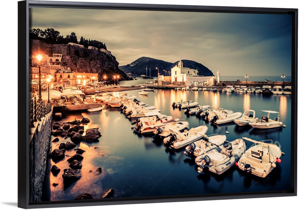 <p>Italy, Sicily, Lipari, Marina Corta at dusk.</p>