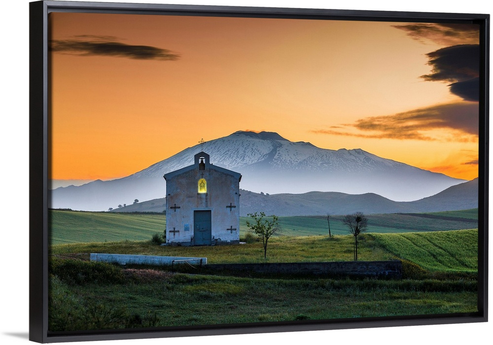 <p>Italy, Sicily, Piana di Catania, Little church in Borgo Franchetto, Mount Etna in the background.</p>