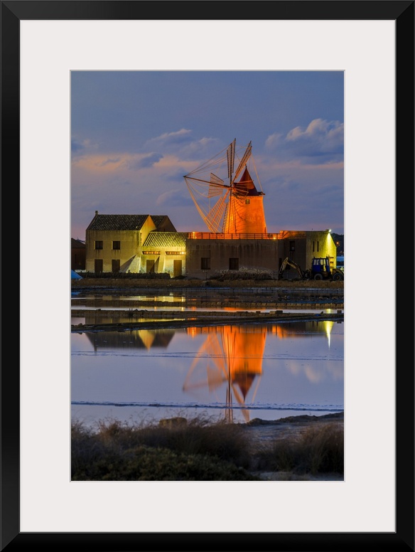 <p>Italy, Sicily, Trapani district, Marsala, Isole dello Stagnone, Windmills in the salt pans of the Stagnone di Marsala.</p>