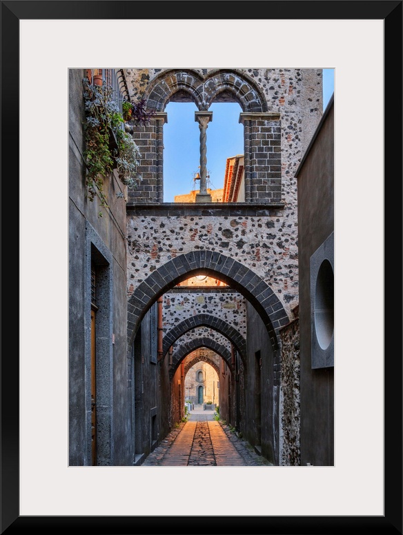 <p>Italy, Sicily, Catania district, Mount Etna, Randazzo, Via degli Archi and mullioned window of the 1300 C Church of San Nicol..</p>