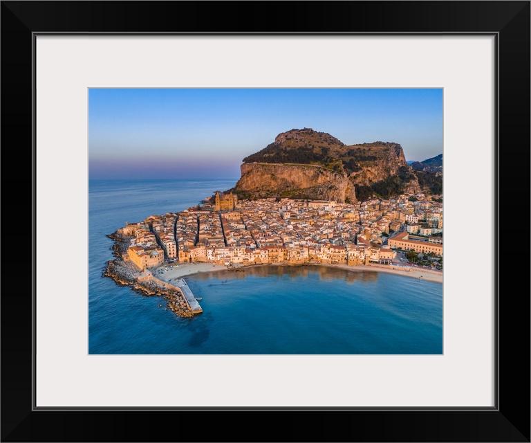 <p>Italy, Sicily, Palermo district, Cefalu, Mediterranean sea, Tyrrhenian sea, Aerial view.</p>