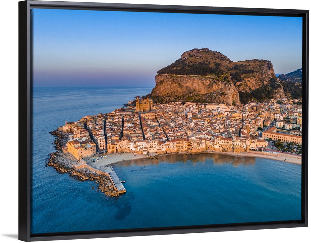<p>Italy, Sicily, Palermo district, Cefalu, Mediterranean sea, Tyrrhenian sea, Aerial view.</p>