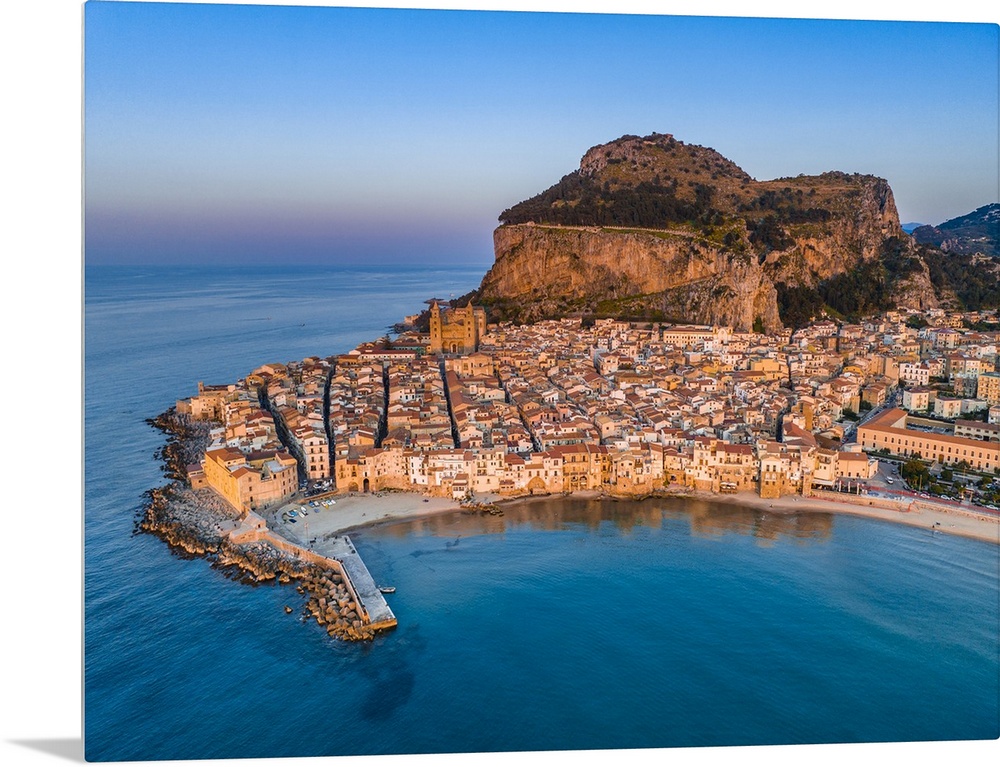 <p>Italy, Sicily, Palermo district, Cefalu, Mediterranean sea, Tyrrhenian sea, Aerial view.</p>