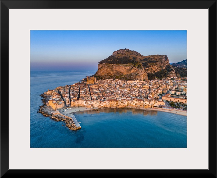 <p>Italy, Sicily, Palermo district, Cefalu, Mediterranean sea, Tyrrhenian sea, Aerial view.</p>