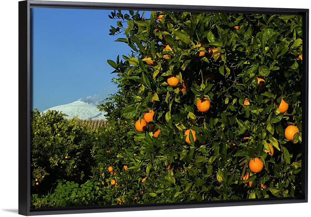 <p>Italy, Sicily, Piana di Catania, Orange tree and Mount Etna in background</p>