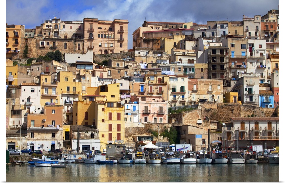 <p>Italy, Sicily, Sciacca. The port with the houses in the historic centre.</p>